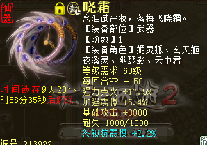 晚上睡不着,上号砸了几个神兵都碎了,不甘心之余就拿了个1级的克火强抽去洗蓝字,结果出了个忽视抽1.5高兴了半天。 看到身上洗完还有几个仙器,又去格子10块钱点了个1级的来洗,结果2下出了个忽视抽2.2.,然后看了还有几个仙器又特么跑去点了个来洗。 这次估计洗了20多个,来了个: [编辑:韦小贝]