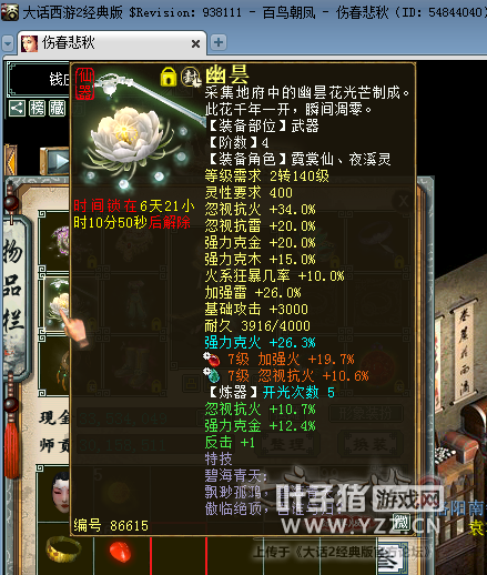 不要着急放弃你的宝宝,万一他是一只潜力股呢?或者你的这只笨鸟到200才开6格子呢?一切皆有可能....淡定。(PS:表哥,你来,我保证不打你,你给我解释下我6只200级3开铁蛋怎么回事?) 四、一把谁见了都“上火”的武器 这个属实有点上火,强火、忽视火、不过炼器的克金如果换成克火,那就真的是火力! 五、一把完美的克木三尸虫武器 蓝字、炼化、以及炼器堪称漂亮,你值得拥有。 六、表哥,你是放弃我了么? |