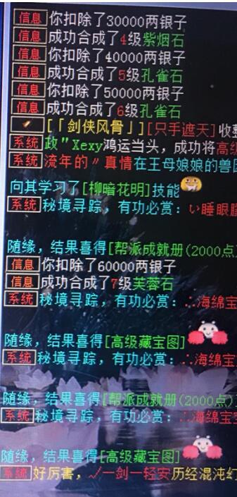 合一百个石头看看,直接用钱买,先点大话币: 统计下结果,仙号有一个5,50个新石头下去全军覆没!最后留了一个5...人号上有1个6,50个石头下去上了一个7! 不骄不躁,目标8级价值105的宝石!如果到不了105,那就升到9,希望那一天早日实现! [编辑:慕言]