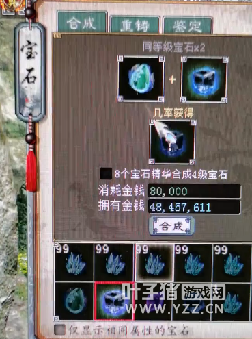 两颗可交易的8级宝石冲9,如此震撼的场面,前戏当然要做足啦! 足得不能再足的情况下,看看结果能成功么? |