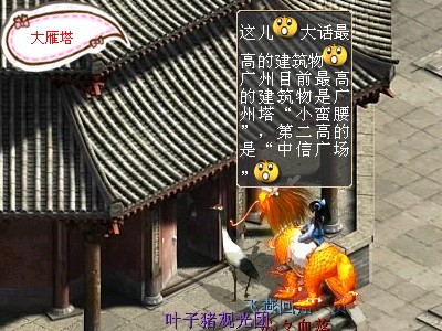 走过大桥我们来到大话场景中最高的建筑物大雁塔,在广州目前第二高的建筑物是“中信广场”
