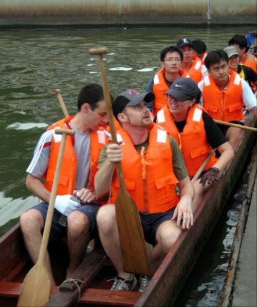 除了广州人,外企的外籍职员都很积极参加每年一度的赛龙舟, 在他们看来能坐上中国的“龙船”向前奔腾是件非常值得骄傲的事情! |