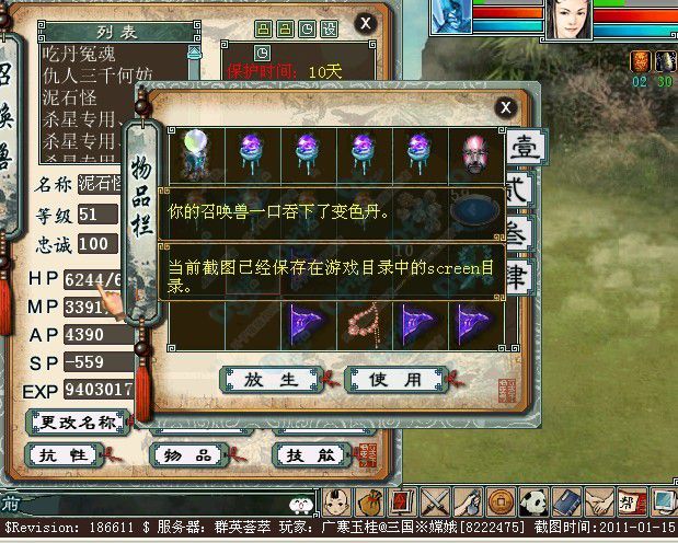 某神秘敏法仙玩家:携带仙器神兵变色宝宝