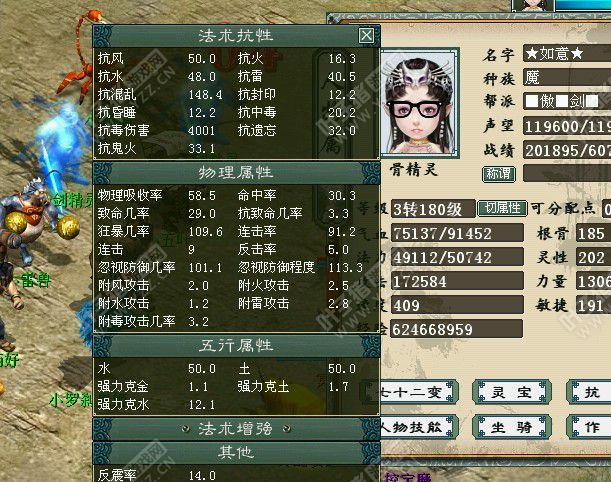 大话西游2中从来不乏牛人,今天这位大神就是其中一位。全敏能到2830,全功竟达172584,再看其属性抗性,真是亮瞎你双眼,让你望尘莫及!