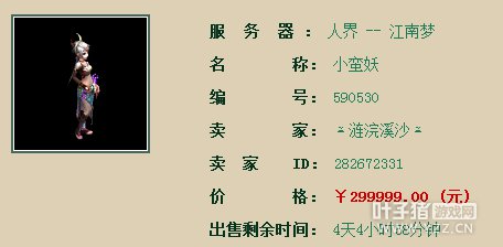 土豪天天有,最近真不少,一会是15个终极的男人一会又是9个终极的男鬼。 >>推荐阅读:多功能型男人找队:24个宝宝中有19个终极 今天我们来看一下江南梦售价30万的女魔号【涟浣溪沙】的藏宝阁信息! 如果估算的没错,这个号应该是江南梦某顶级队伍的女魔,但是由于一些特殊的原因,这个女魔选择了卖号。单从号的整体属性来看:可全敏,可敏血。打敏队和打普通血队应该是拿手好戏!再看其装备,五阶仙器套,这可不是一般女魔承受得起的,而佩饰则是全部七级,包裹还有一把六阶尚未洗好的红尘,灵宝则是传世的震雷鼓,多套女魔必须该收录的套装也为他这个号加分不少。 最重要的则是他的宝宝,15个宝宝其中11个终极,含两个变色的终极龙马,其他的四个中一个是年一个是范式,另外两个则是隐身系的宝宝。足以见得这个女魔为这个号倾注了不少心血! 孩子这一款也算是亮点之一,三个孩子评价分别为:4763,4925,4894。