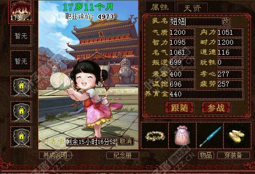 四年区飞升153级男仙号,男女魔双属性,大招47风法大招已点开风法秒全体点开2点,坐骑1点化满胫骨熟练7W加,2.3.4.5.6满胫骨满熟练,120J采矿满级,房子和回灵全满,4J飞机,项链作坊满熟练孩子女已经倾国倾城,职业评价5000左右,目前阶段号基本空号,带一只点化170义金高分蓝色黄金亲密100W。 >>推荐阅读:"飘渺郎君杯"第三届单挑赛32强诞生 装备:风狂暴15灵敏+73项链,6级护身F两个:品质998对无属性伤害,忽视风,还有一个品质981,强克,风狂暴忽视风,还有一套杀T满抗配饰,三清丹还有35个,套装:太昊,霄汉,燃灯,腾蛇已刻录,还有寒鸦已满没刻录,通天差3件。 本号亮点就是底子稍微小资一点,头像,座驾,时装,特效都是应有尽有,时效点的是神人降临众生膜拜。 <<<点击进入大话西游2论坛讨论>>>