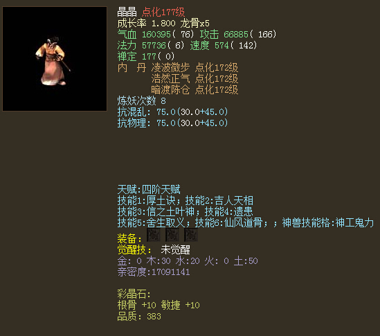 那些年,说起人族来,有一个人的名字可谓名震天下,他曾在叶子猪举办过天下第一单挑大赛,更与各路英雄把酒言欢,打赌五阶藕丝说送就送,视金钱如粪土,观名利似云烟,自有一派笑傲江湖的大侠风范。 这个人的名字相信就算不提大家也非常清楚,但近来却少活跃于大众视线之中,咱们今天就来秀一秀他身上那些不为人知的神级物资,作为一个男人,他已是众多玩家追求的目标,用偶像二字形容绝不为过! 先从他的抗性属性等细节看起,最后更有收藏的数只绝版人形神兽非常亮眼,而身上十数只神兽的亲密更是千万级起步,一桌饕餮大宴会尽数展现在您的眼前: 好啦,就为大家展示到这里,相信您已经眼花缭乱了吧!希望这些曾经带给我们无数精彩PK的大神们,今后能够取得更为辉煌的成绩,莫道相见不如怀念,我们很愿意看到这些巅峰人物的表演! <<<点击进入大话西游2论坛讨论>>> [编辑:韦小贝]