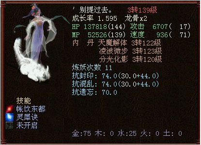 这个号是09年申请的仓库号,最早是天竺国的,和老虎222一个帮派,云烟深处,最后和火云洞合区了以后,各种争斗,我就不说谁对谁错了,最后导致老虎222不玩了,当时帮派也搞得乱七八糟。 由于刚毕业开始上班了,也没有时间玩了,于是卖号了,有没有哪个人认识“另一种沧桑”的?当时要么全敏人要么全血人,那是我,我就玩的中敏人,各种爽。 去年3月(2015年)偶尔看到一个本子上写的大话帐号,就是现在的号,进去以后没转31级,有个小五叶,称谓还是“另一种沧桑的弟子”,瞬间怀念起以前的日子,于是准备入坑,完成自己当年没有完成的全敏人的梦想。 但是一进来以后各种新东西,什么召唤兽技能、灵宝、人物也都飞升满大街了、星符、召唤兽装备、变色都有五种颜色了……眼花缭乱。 |