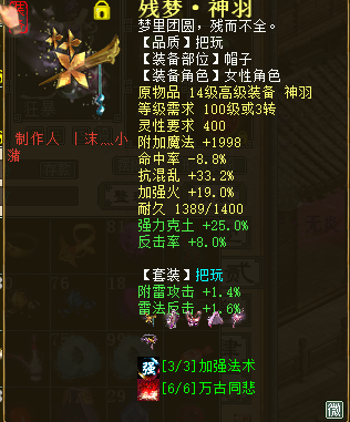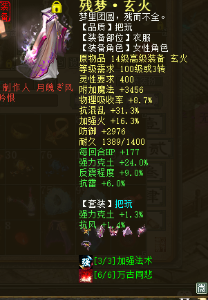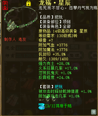 让各位观众久等了,实在不好意思#8 由于仙的装备太难受了,刚才完结,一完结就赶快上来更新帖子#28 长话短说咱直奔主题。 这是我一直向往的服务器,剑烛沧海我来了。 风克土是正克,但是我一直有个愿望就是玩一个火法女仙#25于是我就转了个我最爱的角色。 万事俱备只欠东风,开收装备,下面我就发现这段时间高价收的装备。 跨服买的,没开光,也没炼器#14 借了朋友几个号一直开光,体力全用完了才开光到4,不得不说这开光真的好难开#83 炼器炼了1下就出了个这先将就用吧。 感觉狂暴还是不够高,所以在继续炼器,这属性我炼器了1E多才出的,是不是很悲剧#15 好在出狂暴了可以接受。 衣服 帽子 鞋子 护身符 跨服逛了很久阁子,只找到个这护身符,绿字完美,可惜黄字,点了完了自己在慢慢洗吧。 最终洗出来了,大家猜猜我洗这属性洗了多少钱/疑问 .....1.5E+我彻底被这几率征服了! 星卡我点了个着,等级太低了,完了慢慢培养吧, 配饰买了6个纯敏满默契的出了2.4E这就不发图了#14大路货。 克土BB实在是不好收先点2个这凑合的用吧。 兔子 牛 这仙的装备算是完结了,由于急于凑装备所有的都是跨服点的,价位虚高,我算了下投资了得有3000左右吧#8 再去干点什么呢,去弄个年卡吧! 10E原来是这颜色啊#26挺好看的! 又顺路完成了个功绩。 可以抽奖了#85 欢乐的时间总是短暂的,又到了和大家说拜拜的时候了,欲知抽奖伤害如何请听下回分解。