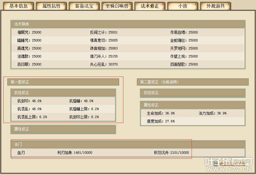 法术修正 人物属性