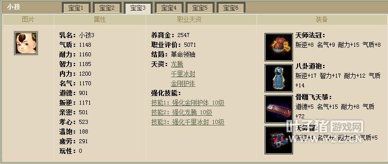 早上逛藏宝阁,发现一个售价299,999元的男人号,各种装备齐全,大家不妨一起鉴赏。 服务器:凌烟阁 物资赏析: 再来看看装备的情况。 还有其他众多装备,混睡装备及套装一应俱全,在这就不一一展示。再来看看几个满级的宝宝及孩子。 [编辑:wei]