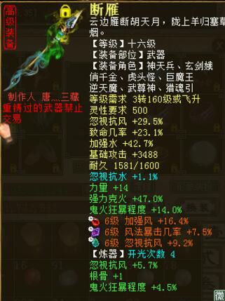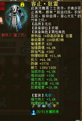 三魔两炮的阵型,纯粹的火力输出,这样的五开党不在少处,摒弃了男鬼的存在,就是为了极限的快! 展示一些有代表性的装备,同时五个号的属性也奉上,大家看看如何吧: 男魔属性展示
