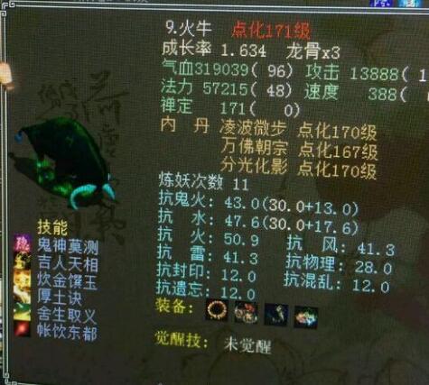 下面这位男鬼的搭配有些神奇,装备上用的是近乎平民的配置,但宝宝却选择的近乎顶级配备,令人似乎跨越了不同等级欣赏,有些意思。 先来看看这为男鬼的装备,后面的宝宝会差很多: 用的十五级武器,虽然炼化和炼器很不错滴样子