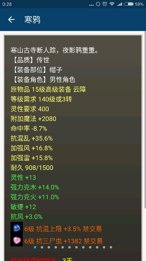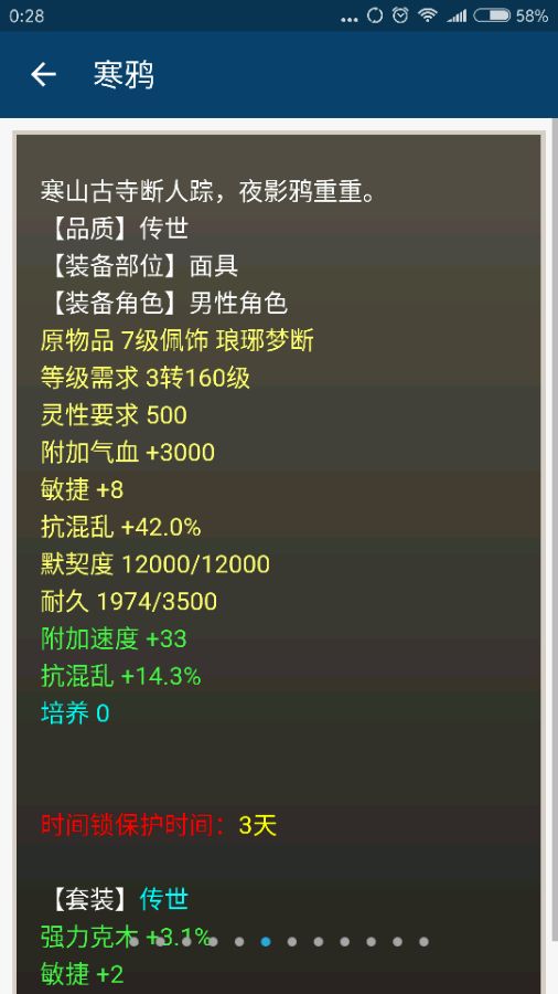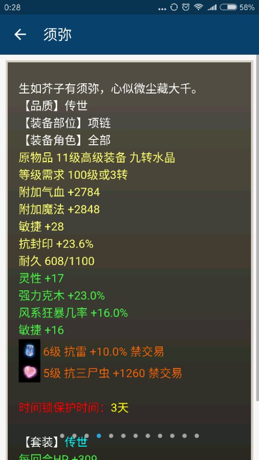 这个传世帽子的强法和克...不过属性非常给力,你们会喜欢这帽子吗? 传世衣服貌似也不够完美 敏灵很高,克6点锦上添花,7级宝石也非常宝贵 很不错的项链,高属性点+狂暴+克构成 以下是配饰一套,副属性都洗得不错