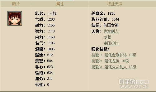 先来看看人物属性: