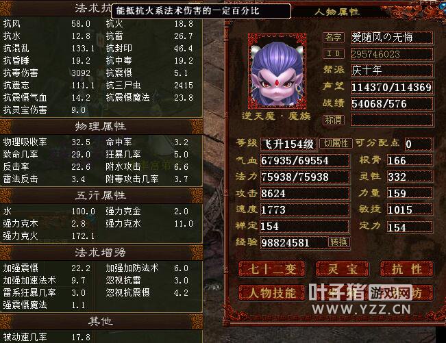 多开党秀一波自己的魔仙属性,三个魔一个仙,加上队伍灵宝高级和低级的展示,来看看是否合格? 先看看三个魔的属性: |