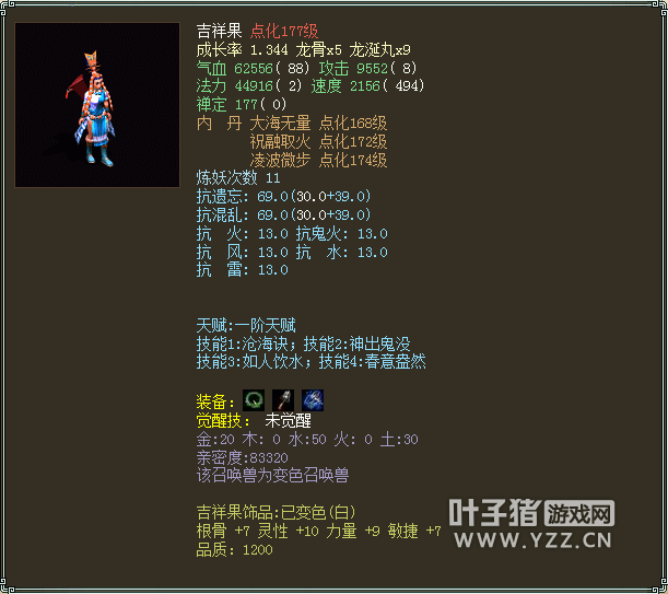 看到这里,可以说这个号的底子绝对合格了,但是是否物有所值还得再仔细瞧瞧他的配置与召唤兽了。我们继续欣赏。