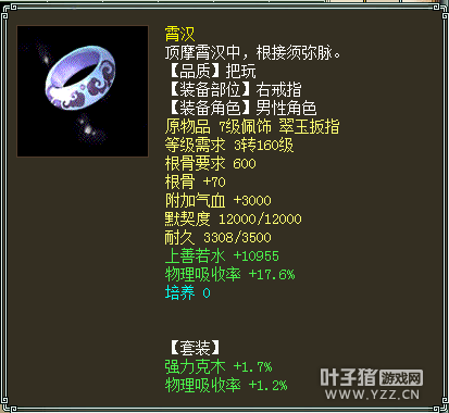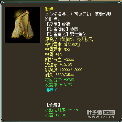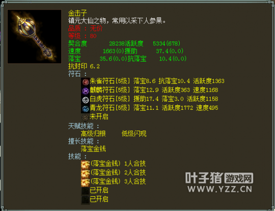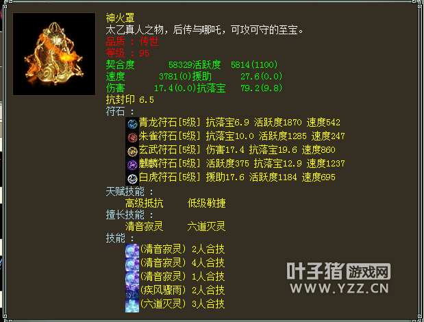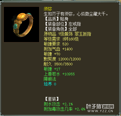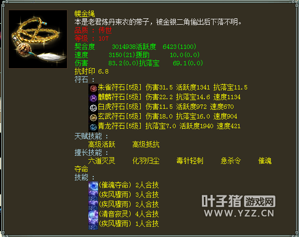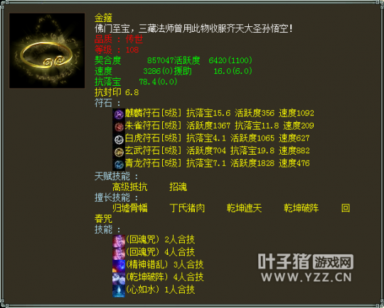 可以看到除了PS外,没有武器装备,一般我们会感叹标价这么贵的号肯定有仙器才对?不过看到了灵宝木有?其中还有个灵宝金箍,后面会一一给大家分享。 收录的套装