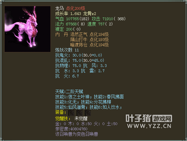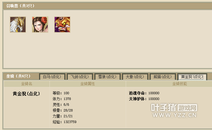 3只宝宝,坐骑全部点化满熟练