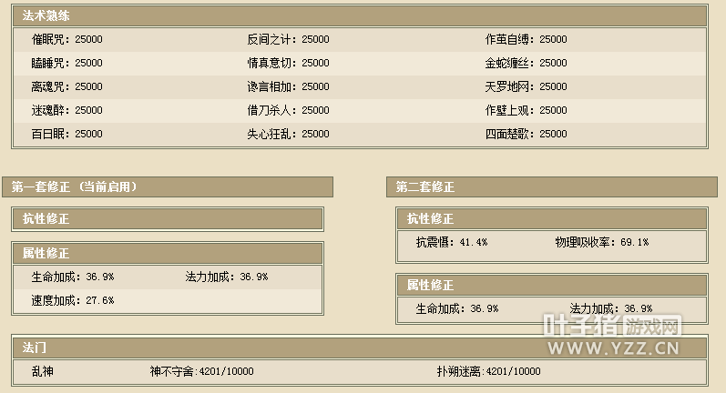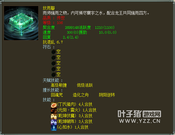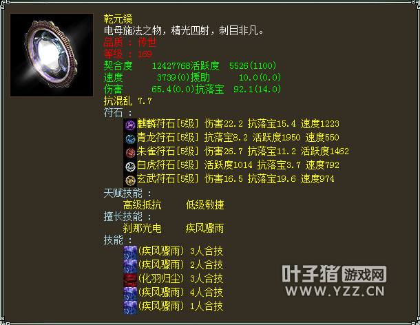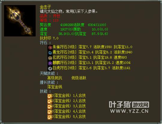 这个号是四年以上服务器,飞升196级,衣服帽子武器项链鞋子五个作坊全部7段,尤其是项链满熟练度,其他的熟练度不是很高,估计作坊都只是用来给自己练练装备,果然是壕。 功绩值也犀利9917,我一直在想目前功绩也只能用于佩戴护身符,而最顶级的护身符不过需求4800,有多少玩家为了4800的功绩值在苦逼奋战?我看到的不是功绩是钱。 地宫积分5200,天赋满,我们继续看其他。 人物属性