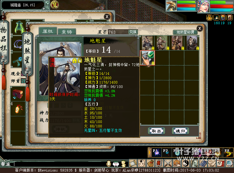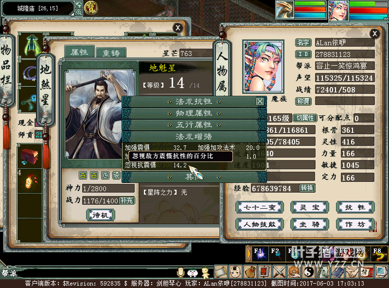 这位玩家为了抽得动铁骨——对,就是那个让人恨得牙痒痒的胖子,专门打造了一套忽视抽装备,并且豪言“全服最高忽视抽,求超越”。 下面一起来看这位来自剑胆琴心的玩家ALan依咿的配置展示,没有帮派加成的状态。 |