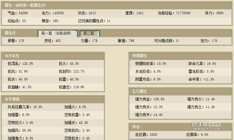 两套属性点,由于卖的算空号,抗性这边就不多看了。