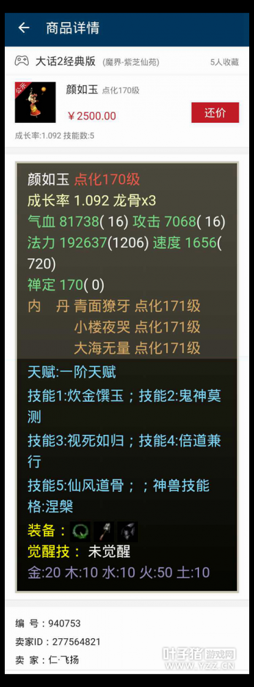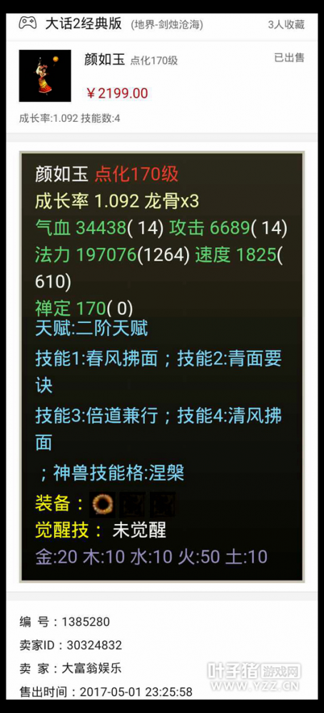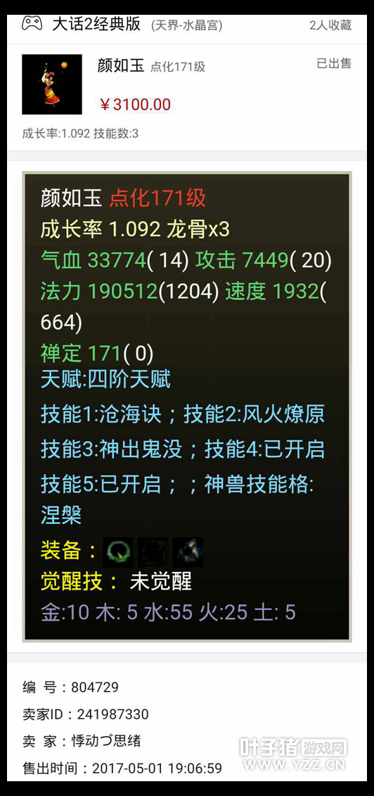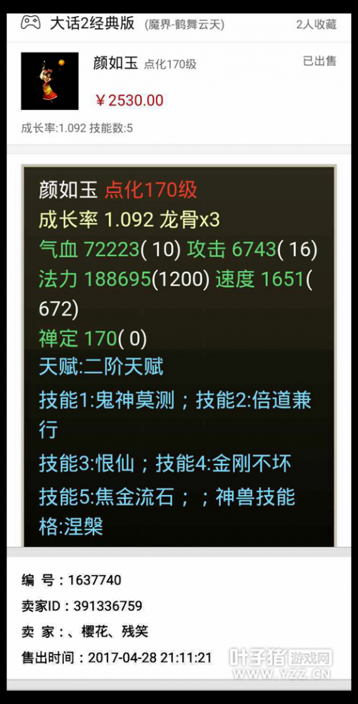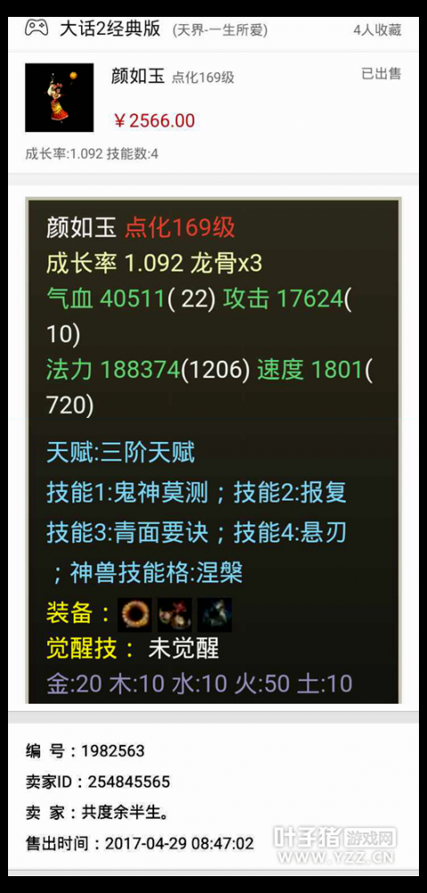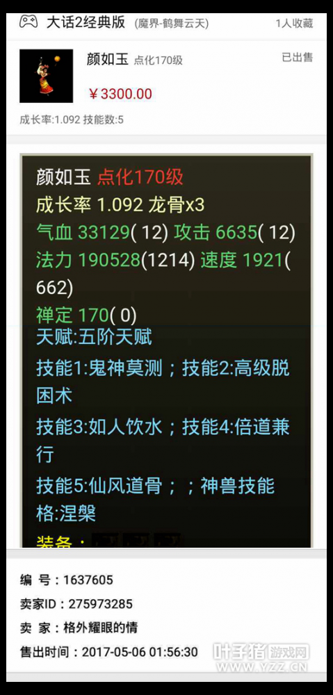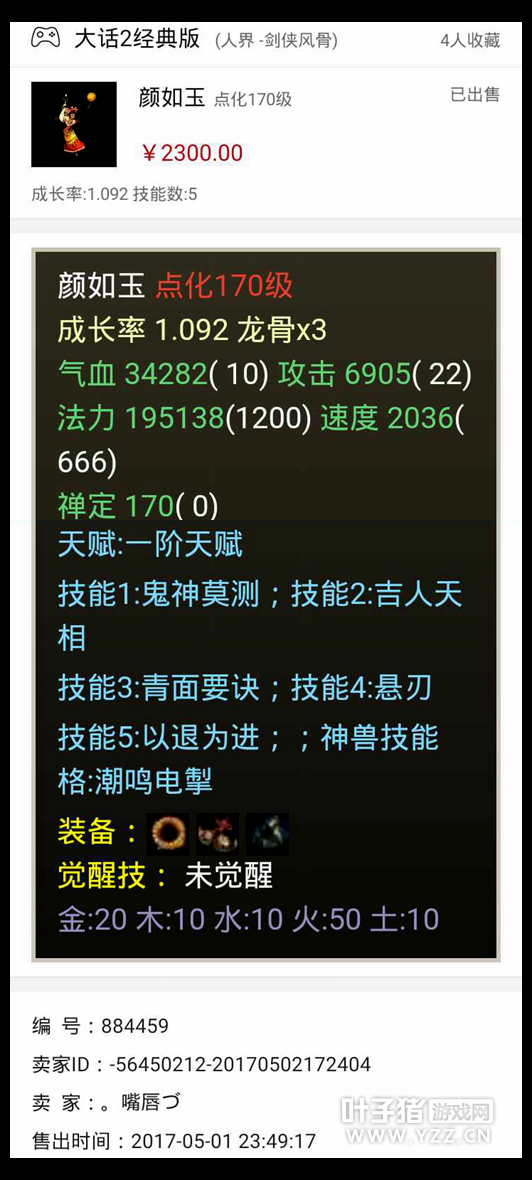 四开格子的颜如玉成交价格在2099-2566元之间,带鬼神莫测技能的价格要高300左右。 卖家总想卖得最高,买家总想买得最低。 我研究了半年多,再研究下去,我觉得会老的。
