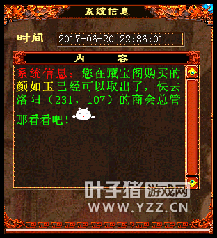 付款的心里还是有那么一丝丝心疼,2500大致相当于208碗兰州牛肉面,所以我决定戒…烟一年! 小编:我以为你想说戒面一年… 逗比:我疯了,这不是要我老命… 鬼区买个东西挺费劲的,我在区里10E满世界收垃圾神兽都没人理我,尤其是本逗这种不愿意花万恶的跨服手续费的选手。 万恶的跨服费! 2500的东西跨服费就是250!有20碗牛肉面我干点啥不好! 吐槽是人类进步的阶梯——在这里我想说的是跨服手续费何时能调整? 买神兽、神兵、仙器这种东西也就算了,买个50元的东西也要收150元跨服费是不是有点过分了呢? 书归正传,取神兽去。 话说现在已经不用去洛阳找商会总管取快递了。 (之前一期节目我写错了,在这里跟大家说声对不起) 把美女带回家