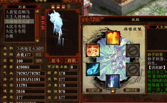 带女人的五开克火队伍,展示一下各个号的属性和灵宝等,看看这样的阵容是否实用好用? 先看看五个号的属性: 女仙属性