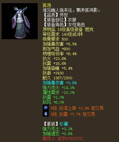 这位女人族玩家,身穿传世白骨配孤鸿,走的强毒伤克火的路线,一身的宝鉴神兽算是小亮眼~ 一起来看看这位物资还算不错的毒女:: |