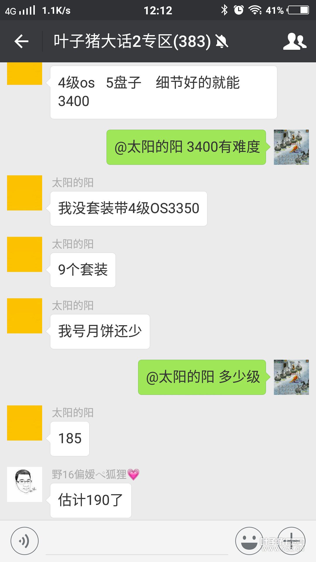 大家好!我是天若有情的战且试天下,今天给大家带来的是新大话西游2男魔3400敏教程。本文只讨论4级藕丝情况下,如果用5级藕丝那轻忪过3400敏啊!高端6阶套极限敏男魔差不多可以到3800-3900敏了。 前几天叶子猪微信群里有人在讨论男魔3400敏的问题,有个朋友说4级藕丝和5级敏盘子,细节搞好可以到3400敏,我是觉得有点难度,不是说到不了,一般情况要月饼点数高的老号,或者级高一点才能到。详见下图讨论截图: 我现在玩的号是2012年重新申请的号,以前2002年大话2测试开始玩的号,没有满级没有满法就转生了,太垃圾了。所以2012年重新练了个号,服务器是合并了但是ID是一样的。名字也改掉了。月饼点数也不多的,183级也是刚好4级OS,用的是5阶项链,比5盘子还多了30敏,修正最好后是相差30*1.276(三世男魔法满修正)*1.192(范氏之魂卡修正最好是1.192)是45.6敏。加上吃加敏30符刚好3403敏。详见下面2个图,注意ID一样,第一张是2012年未转截图,第二张是3403敏截图 。 敏队PK节奏快,比较多人喜欢,一般几回合就定输赢了。第一回合也比较关键,特别是2个敏队对阵时,谁先出手赢的机率大一点,所以男魔的敏是越高越好。条件允许的情况下,肯定是物资越高敏越高。还有就是抗灵宝衣服,帽子,鞋子,项链,能尽量搞抗灵宝越多越好。敏队有个火猿阵或朱雀阵能多抗灵宝,敏男魔进战斗前吃减法药减法也可以抵挡疾风骤雨的伤害,带疾风骤雨的多,所以我都是减法进战斗,如果是清音寂灵或六道灭灵法就会被打空法。套装上最好上传世垂杨(传世垂杨每回合有20%机率封印对方灵宝)和传世洞天。