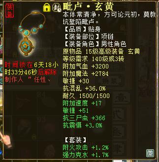 花费万元,连底子带装备宝宝,打造一个速度3000克水200的男魔,看看属性和几个代表性的小装备: |