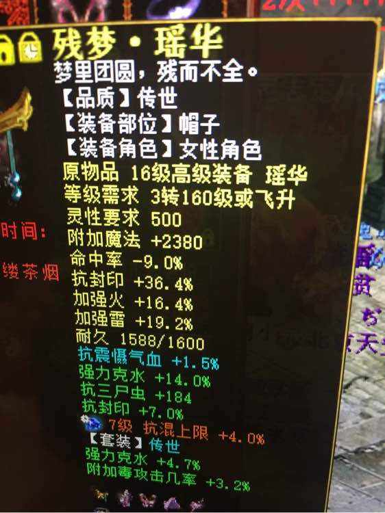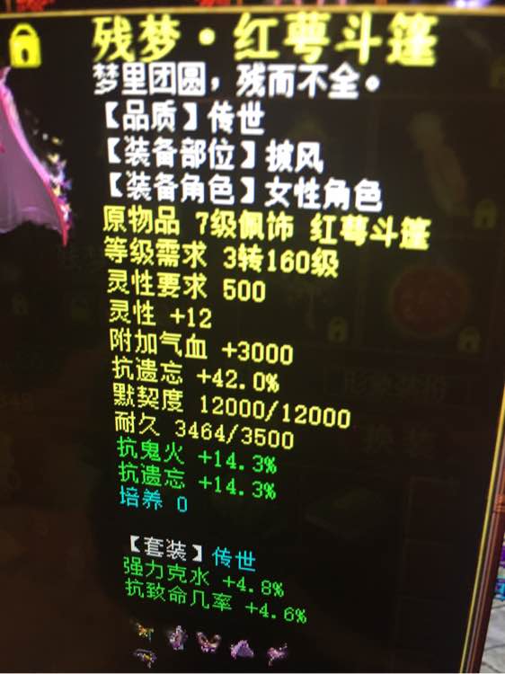 其他都是地摊货了,残梦传世,套装属性也洗好了