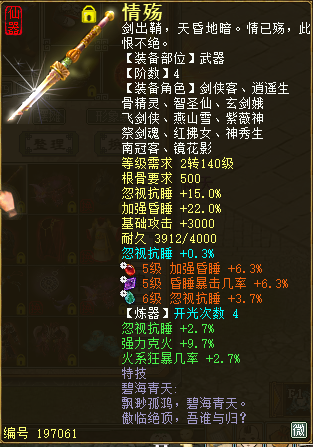 本人是从2005开始玩大话的,算是大话的一个忠实玩家,中间清号过几次尝试玩其他游戏,但是走过千山万水还是回归大话,可能是割舍不了大话的那份回忆和情怀。我基本上玩的都是男人,目前的号在傲雪凌霜名最美Φ下雨天,ID:259058464。 回归主题,今天主要想和大家分享我在玩男人过程中关于游戏理念、男人法术与几率、装备搭配和细节调整方面的一些内容,希望能给大家带来帮助。小资男人,我的定义是必要的物资要有,如强力武器、多套成品装备、支援、返生香、灵宝等等,然后靠细节、套装和多变的属性装备,应付所有的日常任务和PK战斗。总结一句话,合格的小资男人就是能够成为“上得了厅堂,下得了厨房”的多面手。 依照惯例,先附上本人的游戏靓照和几个大件,免得大家说我在信口雌黄,下面所有的属性截图都是没有任何附加状态的: |