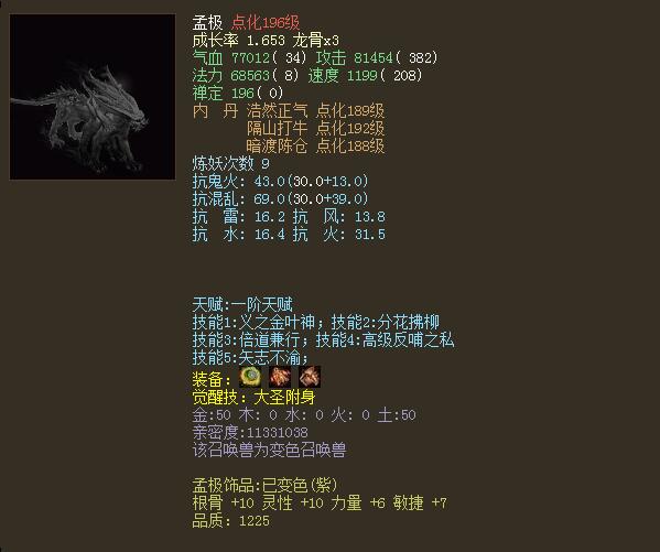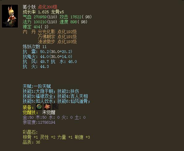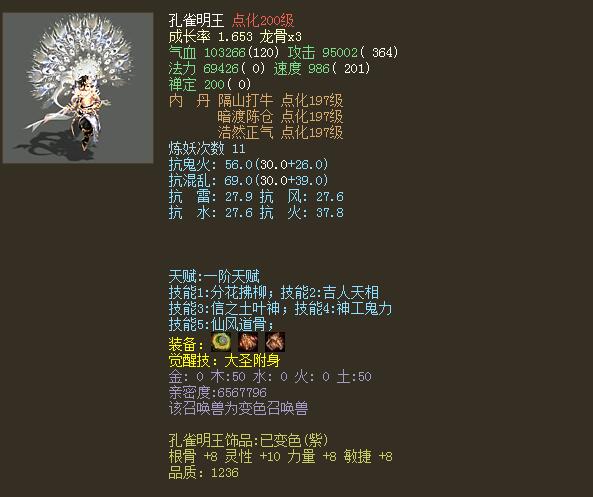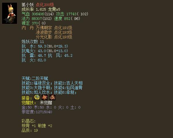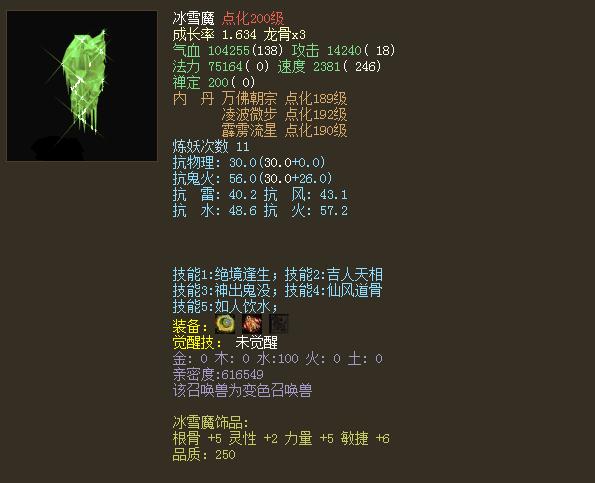 一位六阶寒鸦智圣仙,其装备配置和召唤兽都非常给力,虽然不是六阶仙器套装,但这样的大仙也能够站立在一线队伍中了吧? 来欣赏一下这位大仙的硬件实力,您觉得配置如何呢: 六阶武器,炼器克水带狂暴