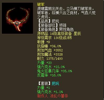 来自凌烟阁的一位男鬼玩家,小小的展示了自己身上的部分装备,其中不乏六阶仙器和绝版神兵,主鬼火和大力输出,分享给诸位一观,看看如此男鬼可能进入比武大会一试身手? 先看鬼火的几件装备: |