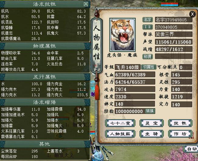一位号称难民的五开党,身上却怀揣大把现金,更重要的是,几乎所有的内容都是自己一点一滴练上去的哦,展示属性与装备和众位分享分享! 基本都是刚飞升,男人号属性,主睡