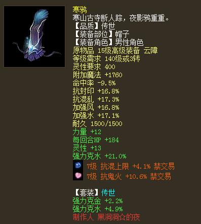 近日见一六阶寒鸦大仙的展示,六阶仙器搭配高级装备,看起来也非常的养眼~ 分享一下这位大仙的装备和诸君一观,您来品鉴品鉴到底如何吧: |