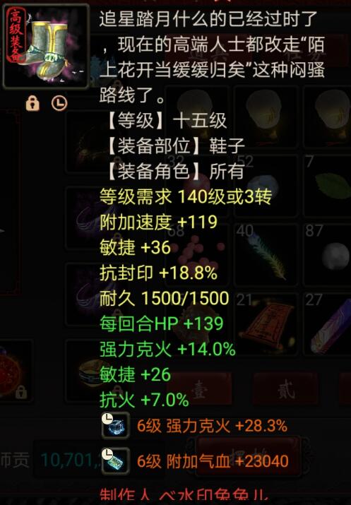 风法容止(克火)程度仙装备搭配展示,算是平民中的干货咯,装备与伤害等一一奉上,大家来品鉴品鉴这样的搭配是否值得借鉴? 先上主要的装备: |