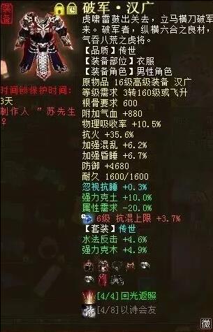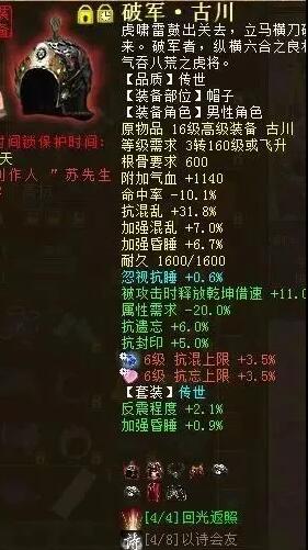 一位四阶睡人登场展示,灵敏向的加点非常有意思,分享给众位一同鉴赏鉴赏! 首先呢,不要在意属性上的抗冰低,对于任务党来说,这个抗性已经足够了,PK方面还能调换,所以不用在这个问题上纠结哦!重点是看这个男人的强睡91.6和忽视睡54.9的属性,带的还是四阶武器,特技通灵睡,所以加了些灵性,还有衣服帽子的蓝字属性以及佩饰上的套装属性,都证明了这是一位追求细节的男人! |
