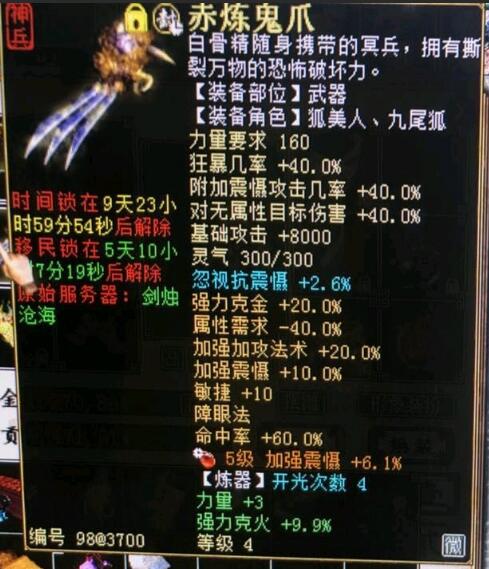 现在的五开党基本都是走克的路线,玩神兵无属性的并不算太多... 今天展示一位神兵五开党的物资供大家欣赏欣赏,和强克一族谁更强力呢? |