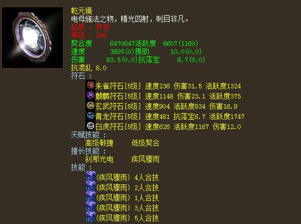 打架为主,任务为辅,这个走精品路线的鬼火男鬼用四阶仙器加上神兵的搭配,打造出了一个很不错的火力手~ 来看看这位男装的配装情况: 现实四阶武器,克水57.2