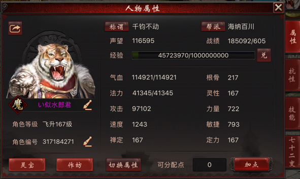 虽然大力现在不多见了,但是大力还是这位玩家心中的挚爱,五破配仙器的虎头怪,展示一下属性和装备给大家分享分享! |