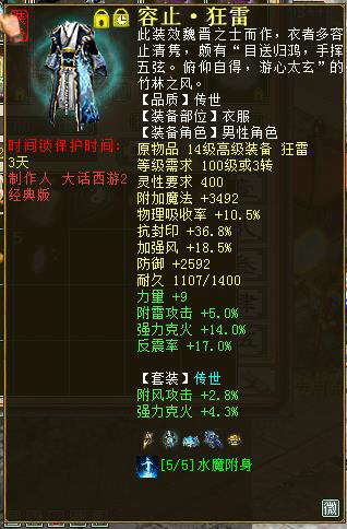 相信看到这里大家会感觉装备很一般,的确,他的装备都很普通,但是看套装的品质可以说是真正的用心了,我想,真正热爱大话的玩家都是这样,用自己的努力,装点自己辛苦打造的角色,希望每一个人都可以玩的开开心心。 您在西行路上有什么与我们叶子猪分享的,可以联系叶子猪官网右上角编辑头像,叶子猪,您西行路上的忠实伙伴。 [编辑:宁财神]