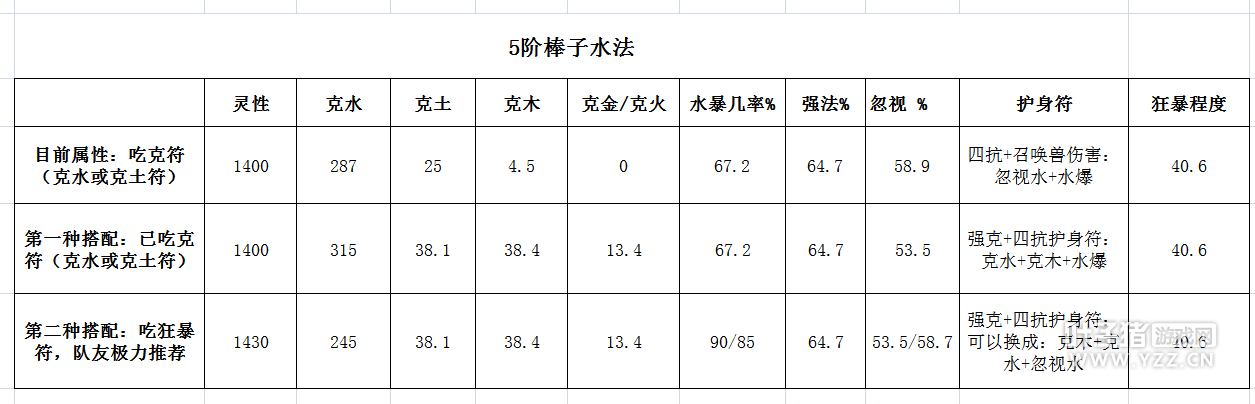 一位玩家遇到了一些疑问,他说在玩到现在这种程度后,发现伤害跟投资不成正比,希望各位大神指导下。 魔王:你好,我教你烟哥吧?请问你遇到了一些什么问题呢? 烟哥:你好魔王,我玩5阶水法仙有段时间了了,搭配是按照大神的攻略来搭配的,上高爆+低克链子,吃克符,按照伪6阶的方法来玩。目前发现有几个问题。 魔王:什么问题呢?可以提出来,我解答不了可以让广大网友给你解答。 烟哥:1.我已尽可能的提高狂暴几率,狂暴发现真的坑,有时1~2爆,有时候爆4个。 2. PK时掉克后发现对人物单位秒伤很可怜,特别是上盘的男鬼,有时不狂暴鬼罩都破不掉。 3. 关于护身符的选择问题:目前用的四抗+召唤兽伤害:忽视水+水爆几率,导致如果吃克水符吧,没有副克,人物伤害少;吃土符的话,克水有少,原本想提高忽视水的,发现副克或主克跟不上了。 4.目前队里极力让我换高克+低爆链子,然后吃克符,所以很犹豫,准备换护身符四抗+强克效果:双克水+木+水爆的。(PS:发现克水+克土+水爆护身符天价了,同样克水+克土+雷暴的高品质护身符也就才660挂还没买) 我的理想是能买个克水+克土+水爆的护身符 没银子啊!!~· 特地把改造的方案用表格做了出来(习惯用excel~~呵): 魔王:果然好用心啊,不过对于这个小编也不是很懂,你把装备都发出来让各位玩家给你参谋下吧? 烟哥:好的。 物资详图: [编辑:宁财神]