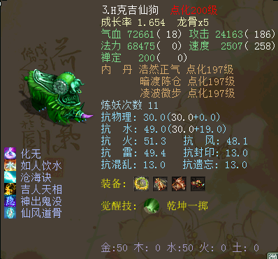 Q:又想起了刚才你说的“侥幸”与“套路”,是不是有如上所说的意思呢? A:是的。所谓一回合结束,或许在比赛初期会出现。比如我刚才所说的几位仙族大佬。我记得以前有血大力仙,还有定力仙,当你一炮下去,你自己都不相信对方竟然还在站立! Q:一炮下去对方还站立,确实有点惊悚。这一届比武有没有令你难忘的战斗呢? A:有一场我换了灵光法门。因为考虑到后期或许(高端)血扛宝宝多一些,而偏偏那一场对面带的拨浪鼓,根本秒不动,大家都知道,仙族比武,浪费一次出手就会非常棘手。还好宝宝化无卡到他一回合,然后宝宝也连击触发了乾坤,不然,这一次估计要与冠军无缘了。 Q:那一场,感觉自己选错法门了吗? A:不是的,我当时觉得好多人会带定力宝宝,就带了灵光,毕竟灵光加法术命中和暴击的,遇到狐小妖也能一炮带走。遇到拨浪鼓之后就觉得还是要选破壁,不少朋友觉得破壁至圣伤害是慢慢磨,可不要小看,破壁的至圣伤害还是非常变态。 黄金属性