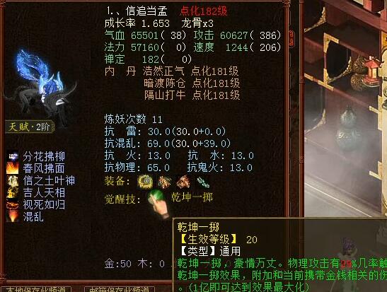 今天看到的这男魔搭配有点意思,仙器、神兵、神兽样样不少,很有代表性的小资玩法! 来看看这位男魔的展示: 四阶仙器,蓝字忽视2.8,价值不菲