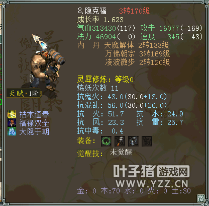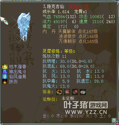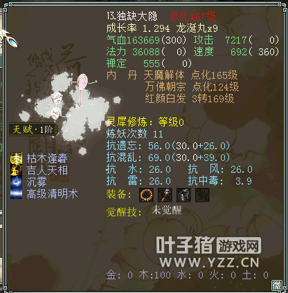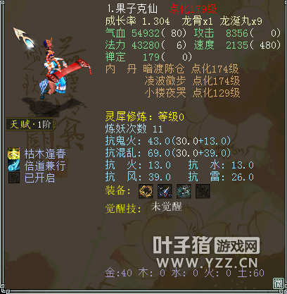 收到玩家投稿,他要来挑战叶子猪前几期的一位太皓仙,让我们来看看他的自述:相关阅读:(http://xy2.yzz.cn/picture/tuwen/201901/1546078_2.shtml) 玩这个仙号之前,我是女魔,刷了应该是半年左右,刷了两套传世寒鸦,现在只打了一套,PK很少玩。前期准备工作,淘装备大概是半年左右。。基本都是300左右一件的,武器550 星符900 这两件是超过的钱,其他都是300左右的装备; 现在是日常属性,全灵是1285的灵性,40万的法,负敏卡应该是进战斗70左右的敏。 这号基本已在调整,都是大件了,武器换克20+ 狂暴14 炼器15的武器2000+ 护身符 双克 忽视 狂暴800左右; 仙的伤害套装起很大作用,还是那句老套的话,好大炮,魔王造! 装备及细节展示: 孩子