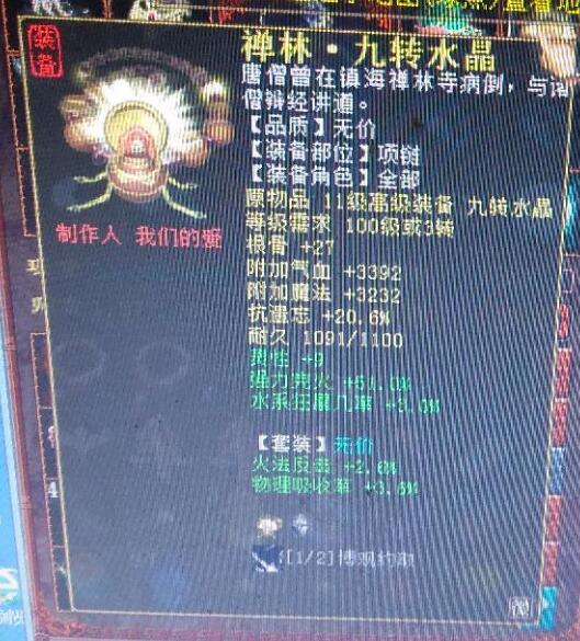伤害定在22万-35万直接,几百块装备,关键你的刷传世,残梦其他克也一样!很多人会说我帽子很值钱,不好意思,自己练的,好像1000来万买的底子,,本想自己练个15就可以了! 武器100 项链100 星卡1500万(自己培养) 护身80 衣服帽子100 传世细节砸钱花了100。 因为是今天才转的仙,后期再给大家其他副本伤害! 仙底子号(孩子技能忽视15)很重要,还有就是套装传世!细节洗克。(我运气不错,都是直接打了出克!因为我没有灵修!) 最后劝大家别跟风,花高价不一定有高伤害!玩程度得看自己口袋有多少,我平秒伤害一样不低!我细节没开帮派呢!也没吃克符! <<<点击进入大话西游2论坛讨论>>> [编辑:韦小贝]