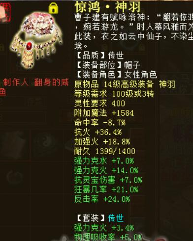 听到龙族的消息,这玩家迅速选择了回归,从一个三转号开始,看看他回归之初光速配出的装备: 1,武器200块,护身400块,这个是大开销。 2,衣服帽子是300W还是400W买的底子,然后自己炼化的 3,项链集市1250W买的 4,鞋子CBG四十五买的,自己炼化的 5,护身1200W买的,自己洗的绿字 接下来说配饰 1,披风300W买的垃圾的自己洗的 2,腰带和右戒指各3000W买的,腰带自己洗的,戒指原样 3,挂件CBG120买的,心疼中。 4,面具100W买的2级,自己培养的。左戒指朋友给的三级自己洗的 最后说下套装 1,灵修和套装都是我自己刷的。二转的时候是女人,一直在刷覆海。 2,本来准备了一万两千点灵修来搞传世和细节,结果大家看到了。面具的克没洗出来,没灵修了。 3,左右戒指挂件我准备用天竺来搭配惊鸿,项链随便弄个传世部件的项链来弄细节。 4,报告完毕,下面展示: |